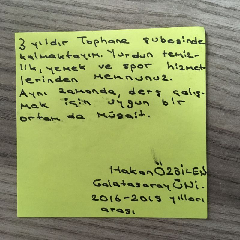 1 yıldır Sabiha Hanım Kıztaşı şubesinde konaklıyorum. Otel konforunda, geniş ferah, merkezi, sıcacık aile ortamında on numara yemekler yiyoruz. Her şey şahane.